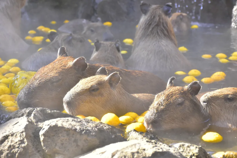 人気の「アニマルボートツアーズ」は、ボートで池をめぐりながら動物を観察できる国内初の珍しい展示方法です。11月中旬から4月初旬には、全国的に有名な「元祖カピバラの露天風呂」も楽しめます。
