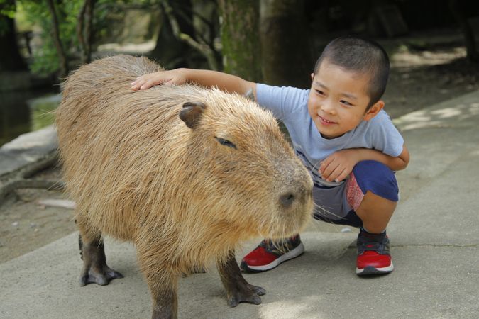 カピバラやカンガルー、カバ、リスザルなど、たくさんの動物に餌やりができるので、子供が大興奮すること間違いなし! 駐車場エリアに併設する「PAW」では、犬や猫などのペットとふれあうことができ、雨の日でも楽しめますよ。