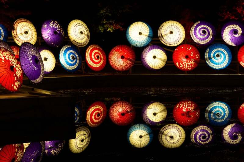 月替わりで変わる和傘のライトアップ