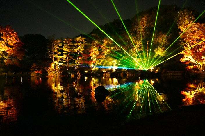それぞれの庭園が持つ独自の雰囲気に、光と音の演出が加わることで、昼間とはまったく違った表情を見せてくれます。2つの異なる様式の庭園で、同時に光と音の演出を楽しめるのがこのイベントの大きな魅力です。
