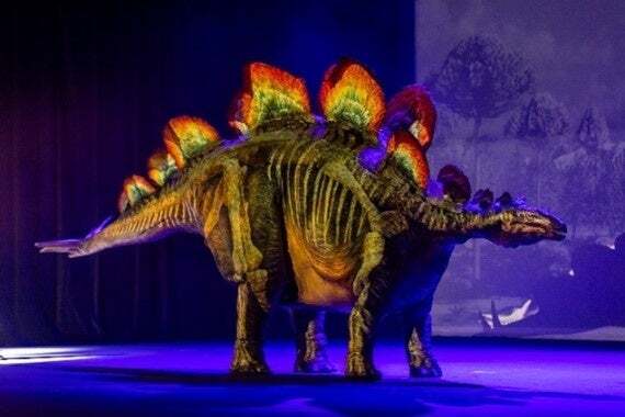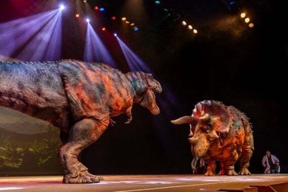 史上最大級の陸上肉食恐竜ティラノサウルスをはじめ、最強の植物食恐竜トリケラトプス、人気のステゴサウルスと合わせて、合計4体の恐竜がステージに現れます。