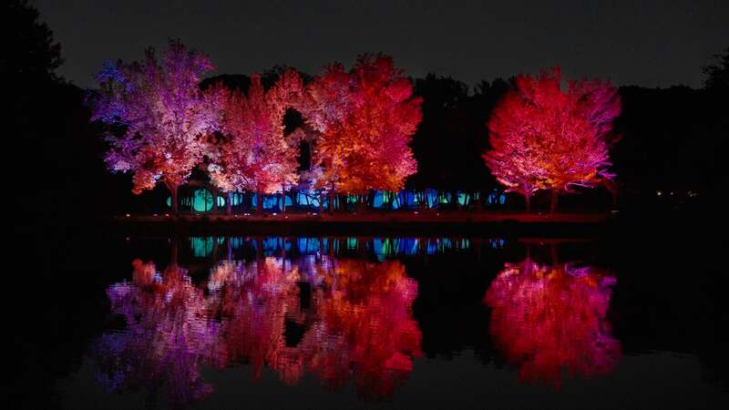 紅葉に合わせて輝く光のアート