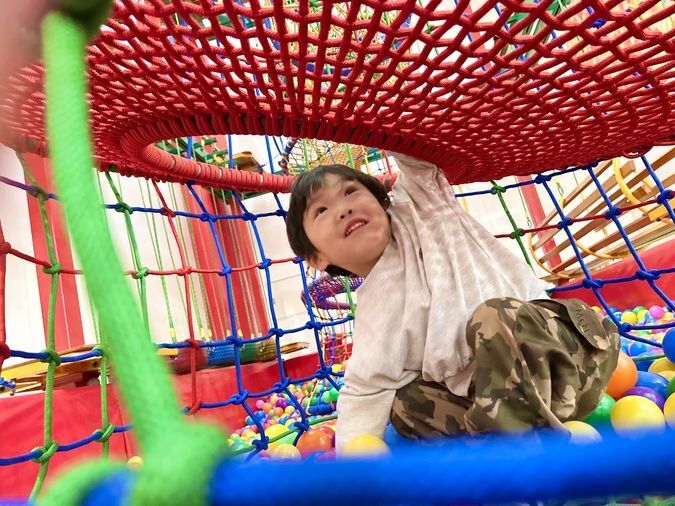 全天候型の屋内施設なので、雨の日でも思いっきり体を動かして遊べるのが魅力です。リラクゼーションスペースや食事スペースも完備しており、お子さまが遊んでいる間、保護者の方もゆっくり休憩できます。