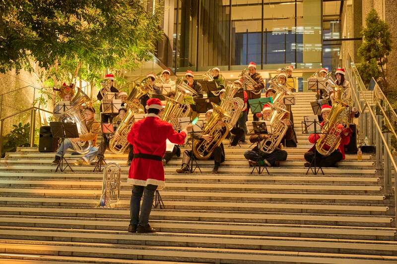 イルミネーション初日には特別な生演奏も開催されます。日本ユーフォニアム・テューバ協会(JETA)のメンバーが、イルミネーション点灯前のひとときにユーフォニアムとテューバの響きで心温まるクリスマス曲を届けます。