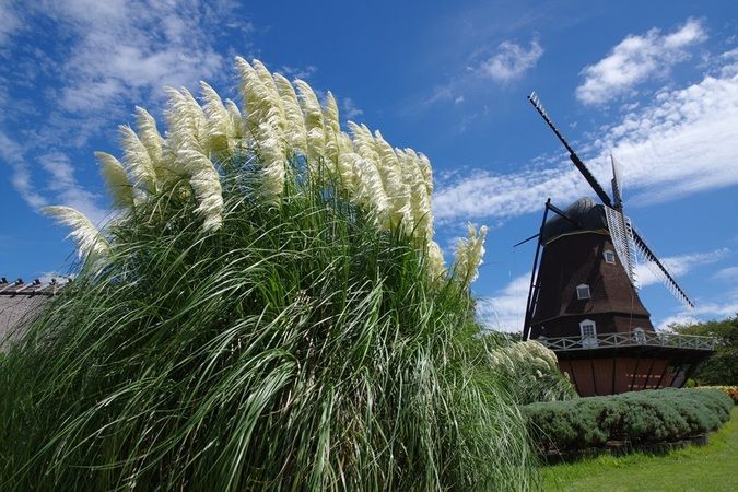 「ワンパク王国」「メルヘンの丘」「子ども美術館」「自然体験」「花の城」の5つのゾーンで構成され、デンマークの風車が立つ牧歌的な風景やアスレチック、ものづくり体験など、多彩な遊びが楽しめます。