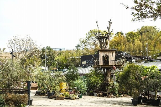 観葉植物や花の苗、ハーブなど様々な植物がそろうエリアのほか、子供が遊べる「あそびば&ツリーハウス」、旬の野菜を使ったサラダやドリンクが楽しめる「ファーマーズキッチン」を完備。