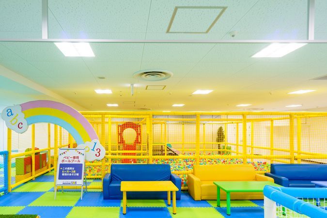 大阪市中央区「谷町四丁目駅」と「天満橋駅」近くの親子カフェです。ボールプール、滑り台、ブランコなど0歳児から楽しめる遊具が充実した屋内型キッズランドで、全天候型なので雨の日でも安心して遊べます。