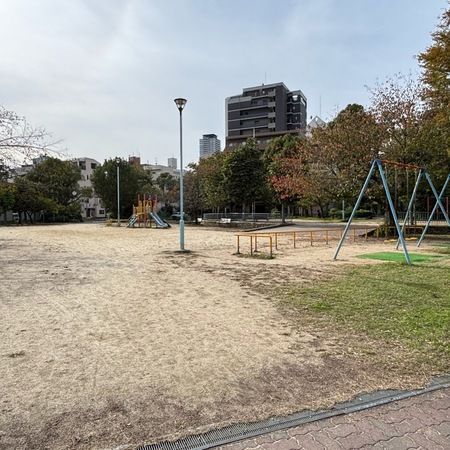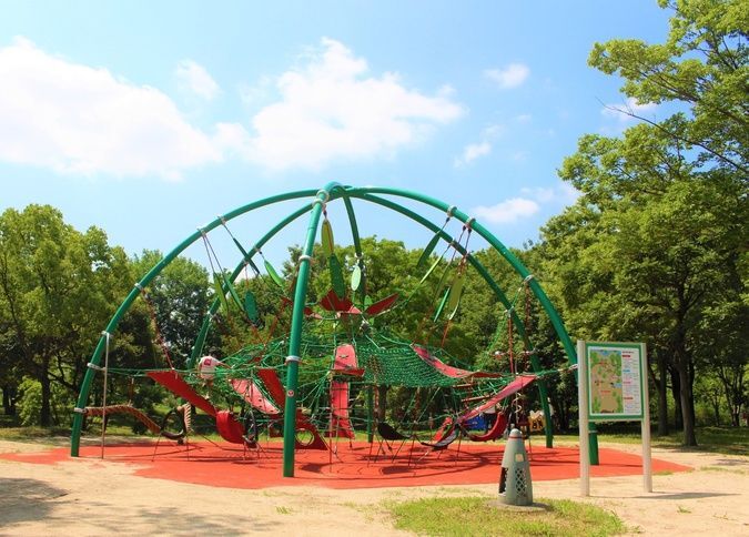 「大阪城」からほど近い「城南公園」は、遊具エリアと広場の2エリアに分かれた広々とした公園です。複合遊具や小さな子供も楽しめるブランコ、トンネル型遊具など、カラフルな遊具が充実しています。