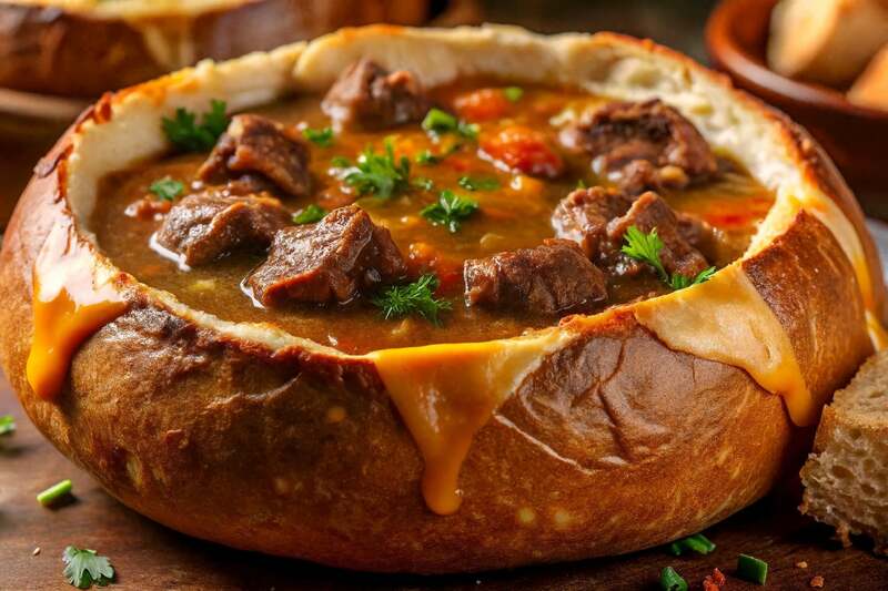 こんがり焼いたパンに詰めた「とろとろビーフシチュー」は、パンの香ばしさと濃厚なシチューの旨みが染み合う、心も体もポカポカになる一品です。