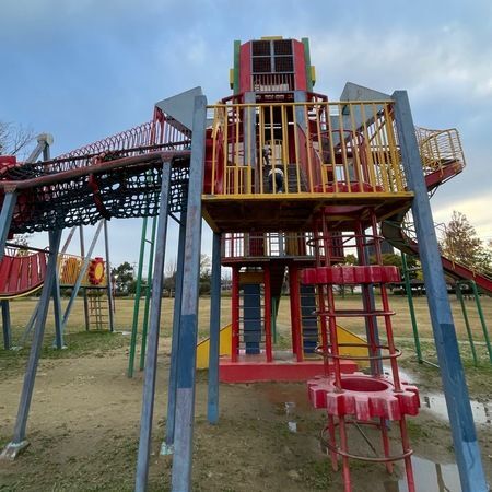 「豊田ラブリバー公園」は、磐田市気子島にある無料の公園です。カラフルな大型遊具と広い芝生があり、子供たちがのびのびと遊べます。