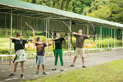 アーチェリーやポニー乗馬、宝探しゲームなど親子で挑戦できるアクティビティが盛りだくさん! たくさん遊んだあとは、大自然に囲まれた「森林の湯」でリフレッシュできますよ。