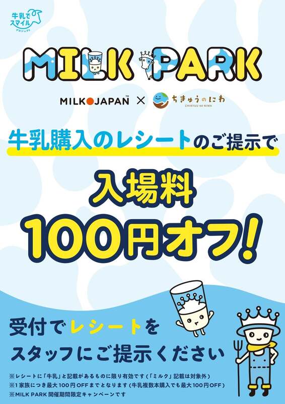 イベント期間中に牛乳を購入したレシートを提示すると、入場料が100円割引になるキャンペーンも実施されます。