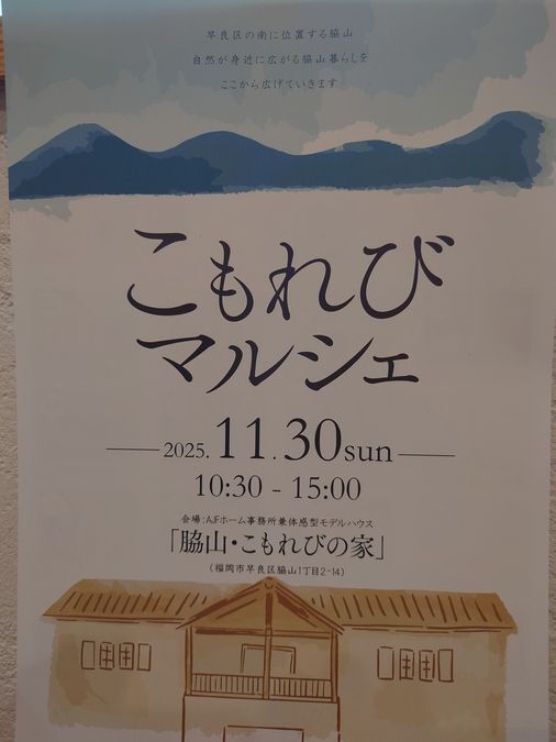 2025年11月30日(日)に、早良区の奥に広がる空と山並みに囲まれた「こもれびの家」でマルシェを開催します。