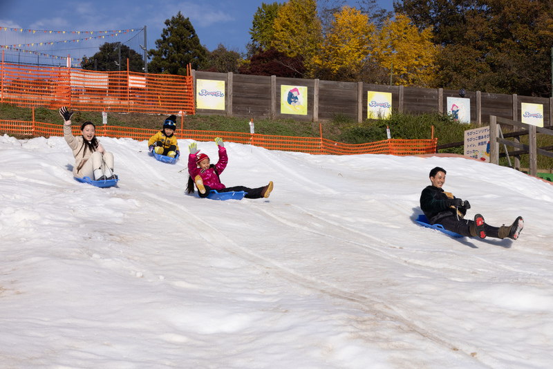人工雪を使っているため、天候や積雪に左右されず、都心近郊からアクセスしやすい“雪遊びデビュー”にもぴったり。