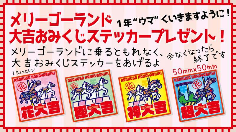 また、1月1日〜4日の間は、メリーゴーランドに乗車すると「午年おみくじステッカー」がもらえます。