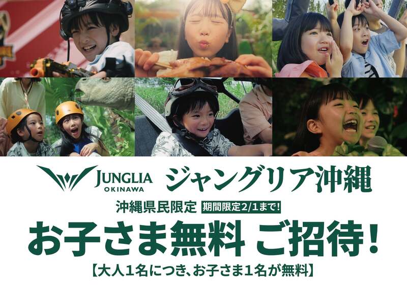 沖縄県名護市の「JUNGLIA OKINAWA(ジャングリア沖縄)」で、2025年12月1日(月)〜2026年2月1日(日)まで、沖縄県民限定お子さま無料キャンペーンが開催されます。