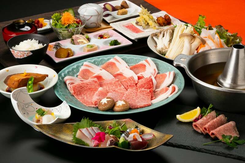 寒鰤はおろし和え・お造り・ブリ大根の3品で味わえ、黒牛はローストビーフとしゃぶしゃぶ、黒豚とともに食べ比べが楽しめます。