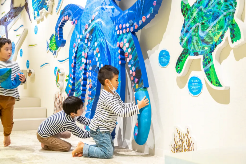 0歳から楽しめ、カラフルな色彩があふれる空間では、みどりのめいろやアスレチック、アトリエなど9つのエリアがあり、自由に行き来しながら遊べます。遊びを通じた学びを大切にしたエリック・カールの信念を受け継ぎ、子どもの成長の「かけ橋」となるようなさまざまな体験ができる施設です。