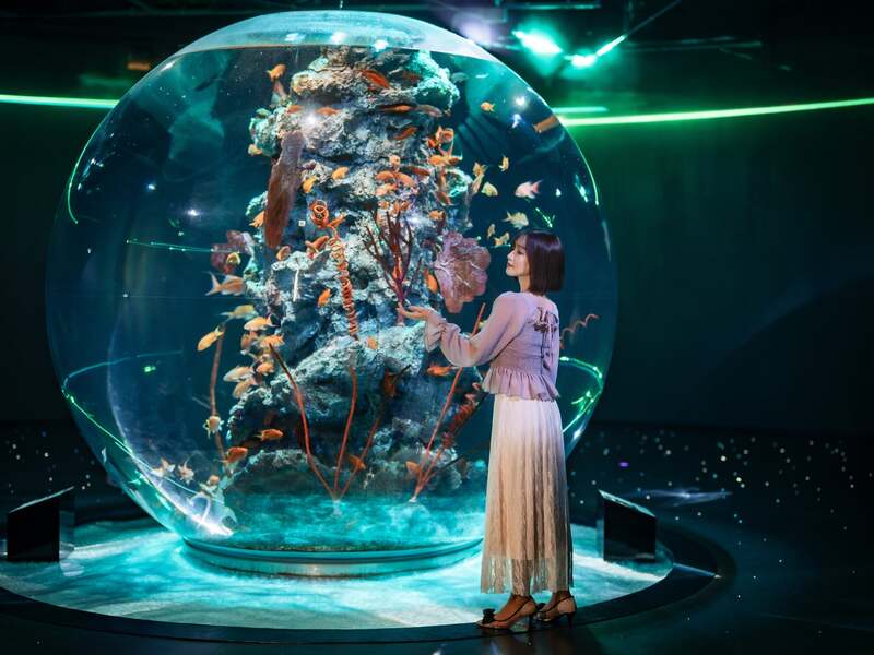 AQUARIUM×ART atoa(兵庫県神戸市)は、各線三宮駅から徒歩18分の場所にある劇場型アクアリウムです。約180種の生きものとアートが融合した新感覚の空間を楽しめます。