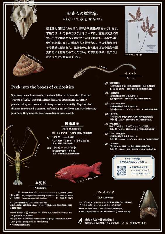 沖縄県那覇市の沖縄県立博物館・美術館(おきみゅー)で、2025年12月23日(火)〜2026年2月23日(月)まで、「いのちのカタチ展—好奇心の標本箱—」が開催されます。