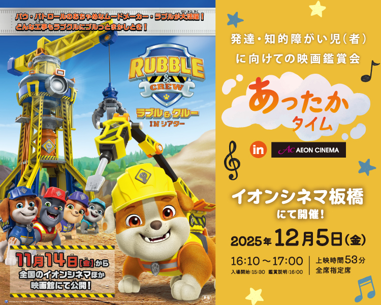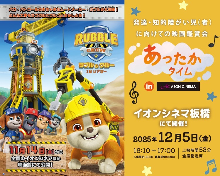2025年12月5日(金)に、「イオンシネマ板橋」で、発達・知的障がいがある子供と家族のための映画鑑賞会「あったかタイム in イオンシネマ」が開催されます。上映作品は映画「ラブル&クルー IN シアター」。