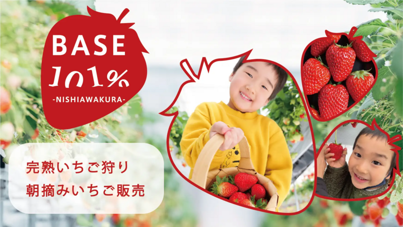 岡山県英田郡西粟倉村にある複合施設「BASE101%-NISHIAWAKURA-」で、2025年12月25日(木)からいちご狩りがスタートします。
