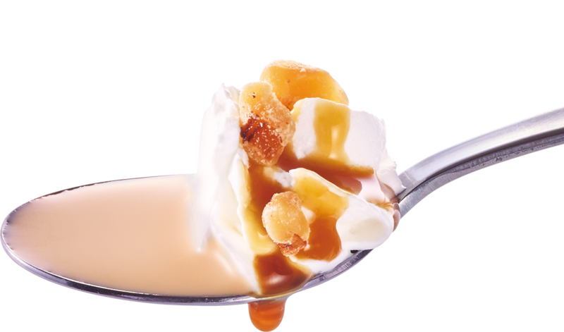 デニッシュにサンドしたキャラメルペーストとクラッシュサブレで、あの「クルミッ子」のザクザク食感を再現。さっぱりとしたソフトクリームが、2種類のキャラメル(ペーストのほろ苦さと、ソースのコク深い甘さ)の深みのある味わいと、クルミの香ばしさを引き立てます。