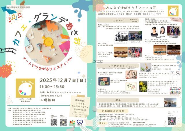 2025年12月7日(日)に、川崎市麻生区の新百合トウェンティワンホールで、入場無料&予約不要の「カフェ・グランデ あさお」が開催されます。