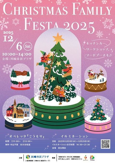 2025年12月6日(土)に、川崎市高津区の川崎市民プラザで、入場無料&予約不要の「クリスマス・ファミリーフェスタ2025」が開催されます。