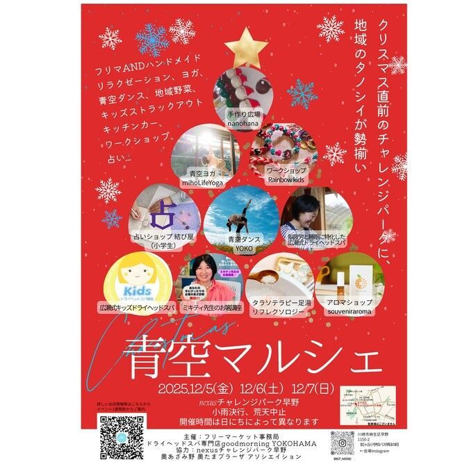 2025年12月5日(金)・12月6日(土)・〜12月7日(日)に、ネクサスチャレンジパーク早野で、入場無料&予約不要の「青空マルシェ」が開催されます。