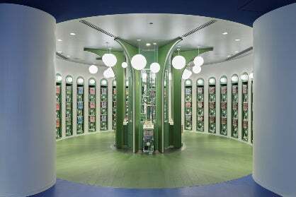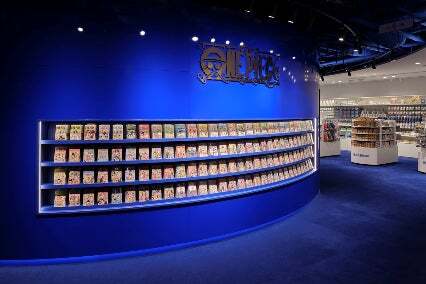 店内は深みのある青色を基調とし、ルフィたちが訪れたさまざまな島々を連想させるエリアごとに分かれています。