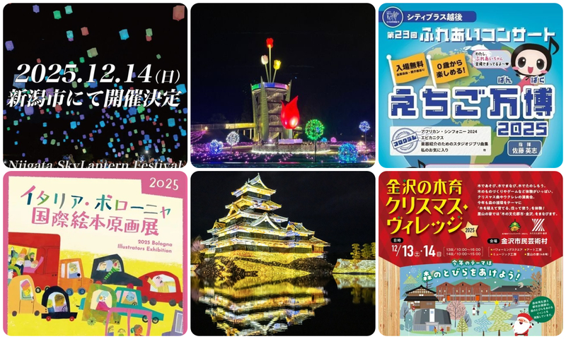 2025年12月13日(土)と12月14日(日)の週末に、新潟県をはじめ北陸・甲信越地方で開催されるイベントをご紹介しました。