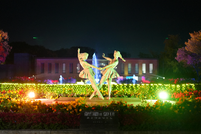 西洋式庭園と日本庭園の2つの庭園で同時に繰り広げられる光と音のショーは、西日本初の試み。園内一面に繰り広げられる光のコントラストが見どころです!