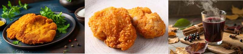 「Schnitzels&Chicken」では、ドイツやオーストリアの家庭料理をモチーフにしたサクサク衣のシュニッツェルやチキンが楽しめます。アツアツのメニューは冬の寒さの中でこそ真価を発揮し、本場のクリスマスマーケットを思わせる味わいです。