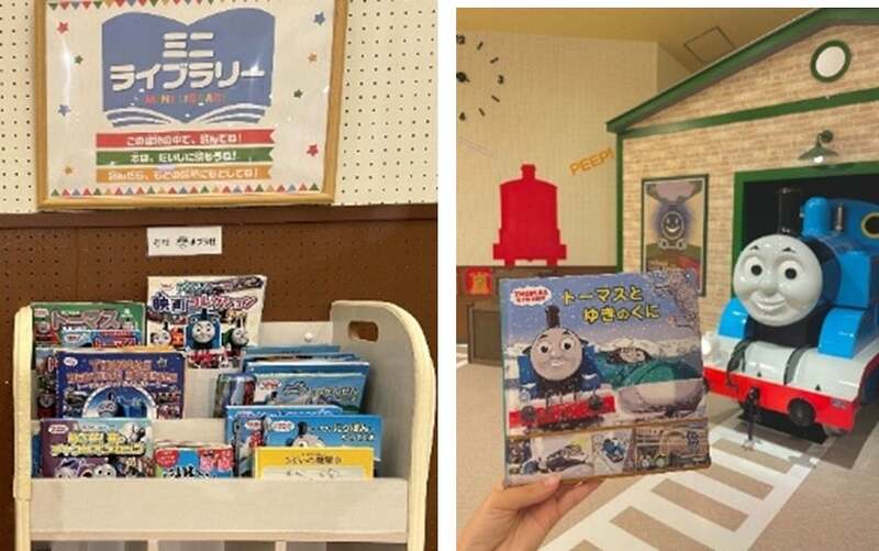 ポプラ社より寄贈された「汽車の絵本シリーズ」や「トーマス大図鑑」、日本オリジナルストーリーの新作絵本「トーマスとゆきのくに」などさまざまな本が用意されており、親子でゆっくりと読書を楽しむこともできます。
