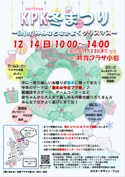 「共育プラザ小岩」では、2025年12月14日(日)に「KPK冬まつり〜Enjoy!みんなとなかよくクリスマス〜」が開催されます。