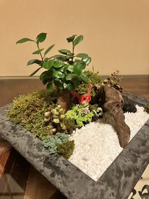 苔や石を使って、小さな庭のようなアレンジメントを楽しめます。花とふれあいながら、親子で癒しの時間を過ごしませんか。