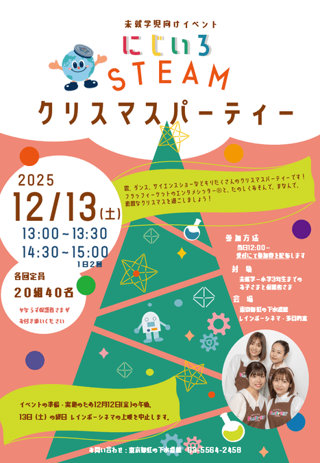 2025年12月13日(土)に、東京都虹の下水道館で、「にじいろSTEAMクリスマスパーティー」が開催されます。