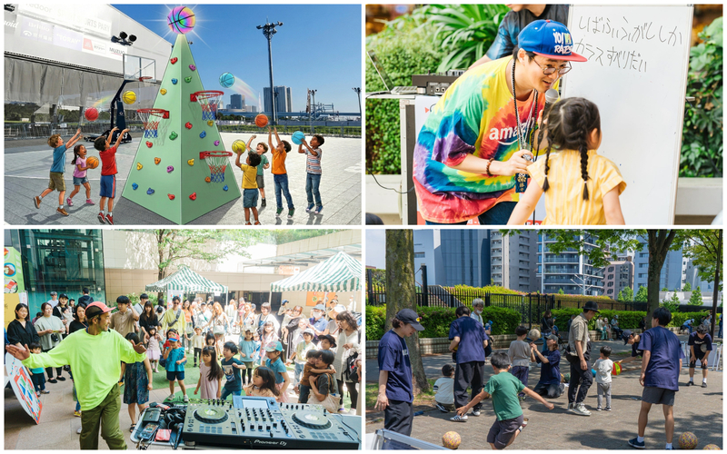 フリースタイルバスケの体験ワークショップやショーケース、子供の耳に優しい音量でのDJプレイ、ダンスワークショップ、ラップ体験、英語遊びなど、音楽とスポーツを通じて親子で楽しめる多彩なプログラムが用意されています。
