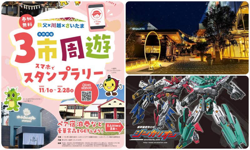 埼玉県の秩父市、川越市、さいたま市で「3市周遊スタンプラリー」が開催されています。