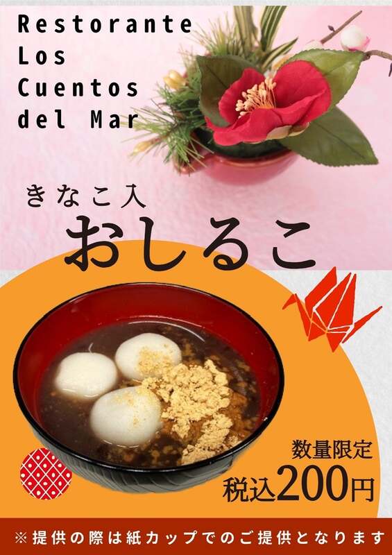 1階レストラン「レストランテ ロス クエントス デル マール」では、2026年1月1日(木・祝)〜1月4日(日)まで、きなこ入りのおしるこが数量限定で販売されます。価格は1杯200円(税込)です。