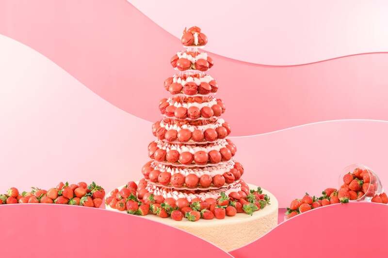 いちごの赤ピンクの優しいたたずまいを美しいサントノーレタワーに組み上げた、神戸北野ホテルでしか体験できないスイーツです。