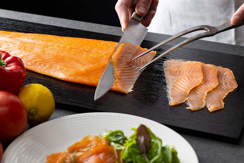 ディナータイムにはノルウェー産サーモンの自家製スモークもカッティングで提供されます。
