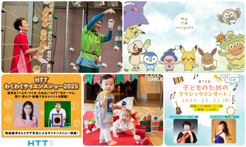 間近に控えたクリスマス関連イベントや、サイエンスショー、ポケモン公式ベビーブランドのPOPUP SHOPなど、大人も子供も楽しめるイベントがたくさん開催されますので、2025年12月20日(土)と12月21日(日)の週末も家族でおでかけを楽しんでくださいね!