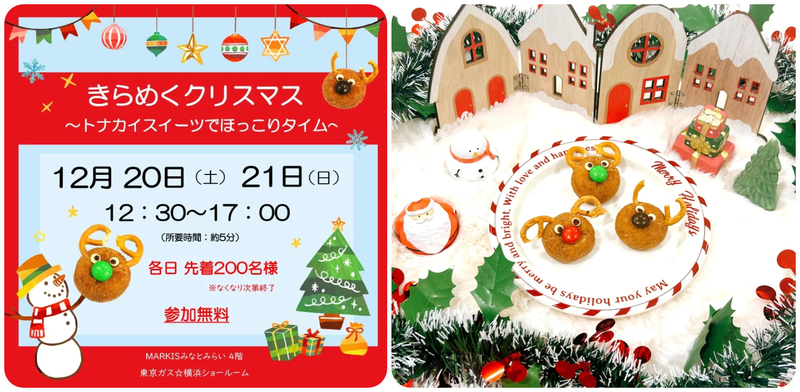 東京ガス横浜ショールームで、2025年12月20日(土)・21日(日)にクリスマスイベントを開催! 調理なしで簡単に作れる「かわいいトナカイスイーツ」を楽しめ、子供から大人まで気軽に参加できるのが魅力です。