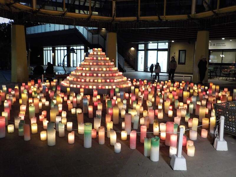 オアシスパーク内のガラスドームとにじいろ噴水広場には、1600本ものキャンドルが並びます。たくさんのキャンドルに火が灯されることで、やわらかな光に包まれた幻想的な雰囲気が生まれます。