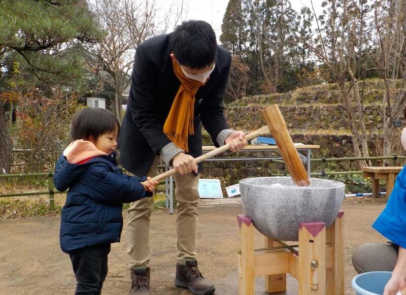 木曽川水園の自然発見館では、12月27日(土)に杵と臼を使った「餅つき体験&ミニ鏡餅づくり」が行われます。つきたてのお餅を使って、ミニサイズの鏡餅も作れます。