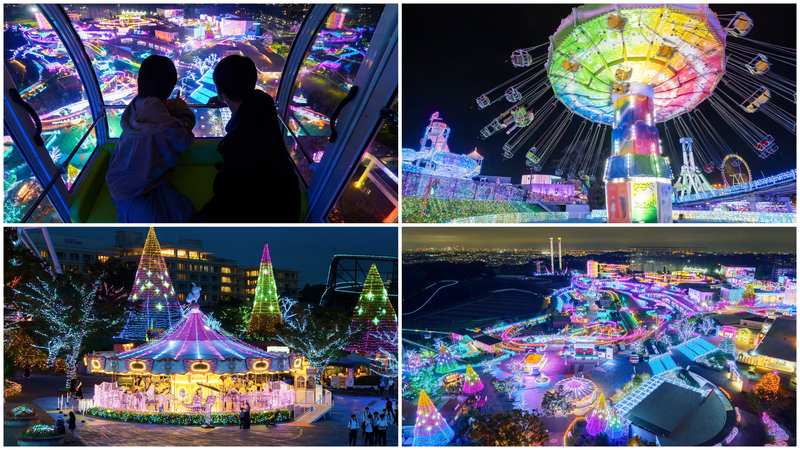 虹色に輝く「まめっちとくちぱっちのたまともリフト」や、600万球を一望できる「たまごっちのキラキラかんらんしゃ」など、乗り物から光の絶景を体感できるのは遊園地ならではの魅力です。