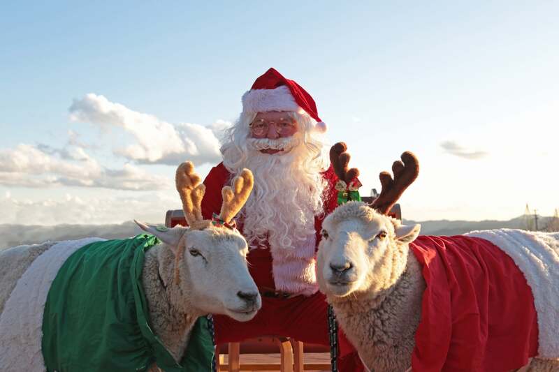 イベント「トナカイひつじがやってくる」では、トナカイの角をつけた羊たちがサンタクロースと一緒に登場します。