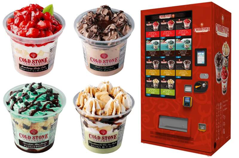 べニュー横には、コールド・ストーン・クリーマリーのパフェアイスクリーム自動販売機を設置。店舗の人気メニューをパフェアイスクリームにアレンジした商品が購入できます。